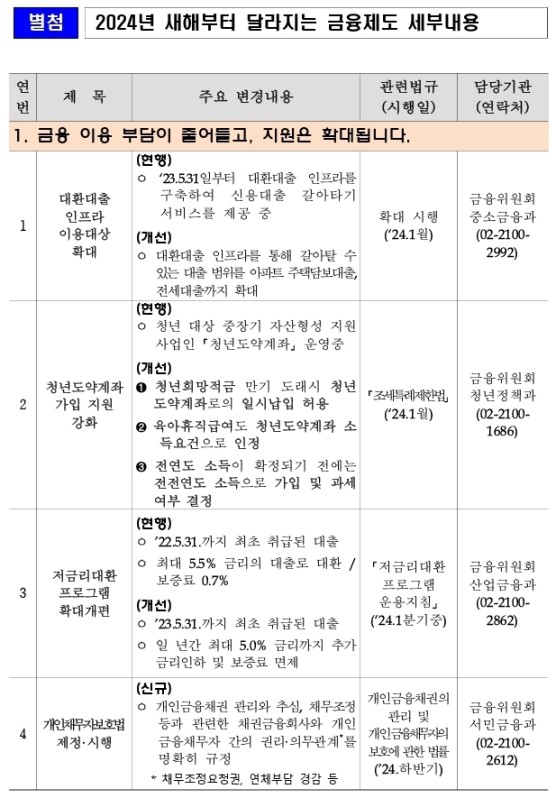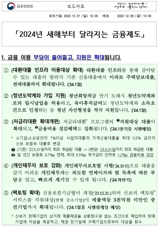 2024년 새해부터 달라지는 금융제도[ 보도시점: 2023.12.31 ]